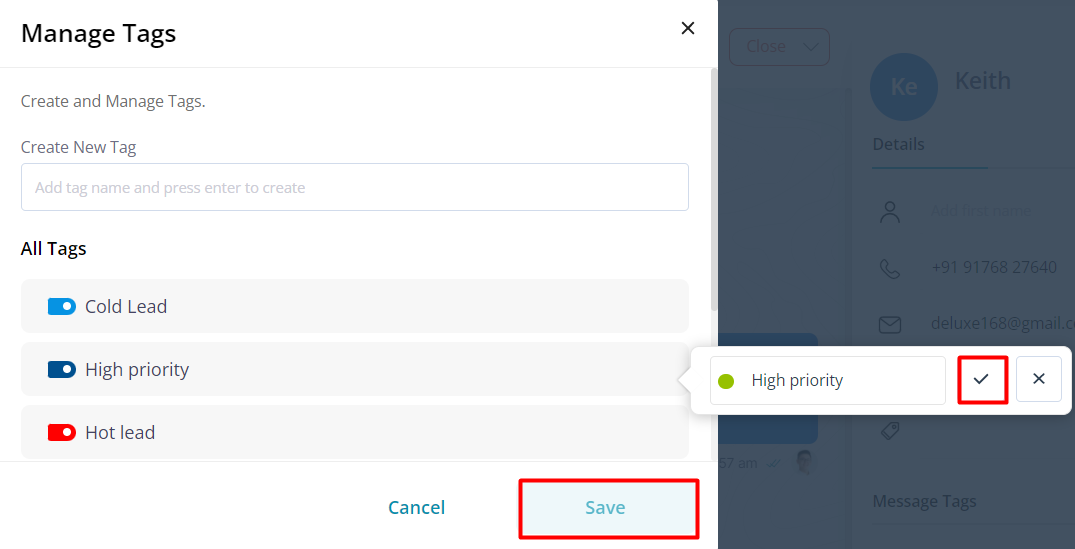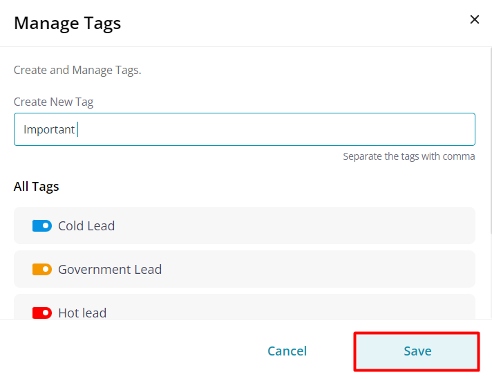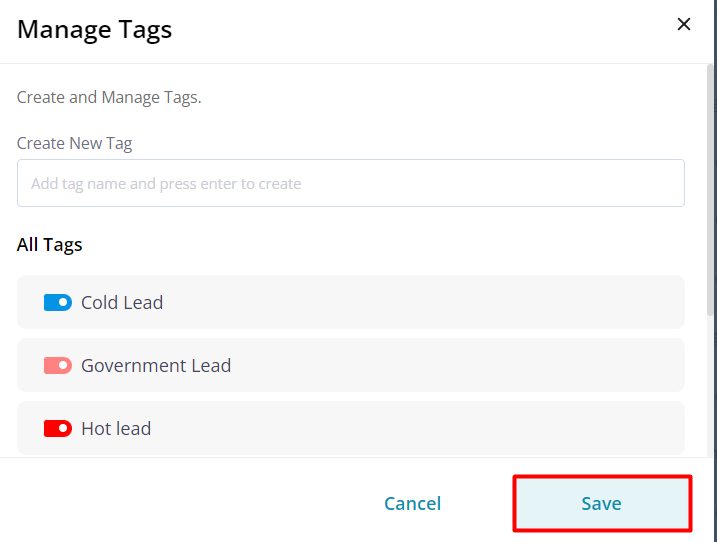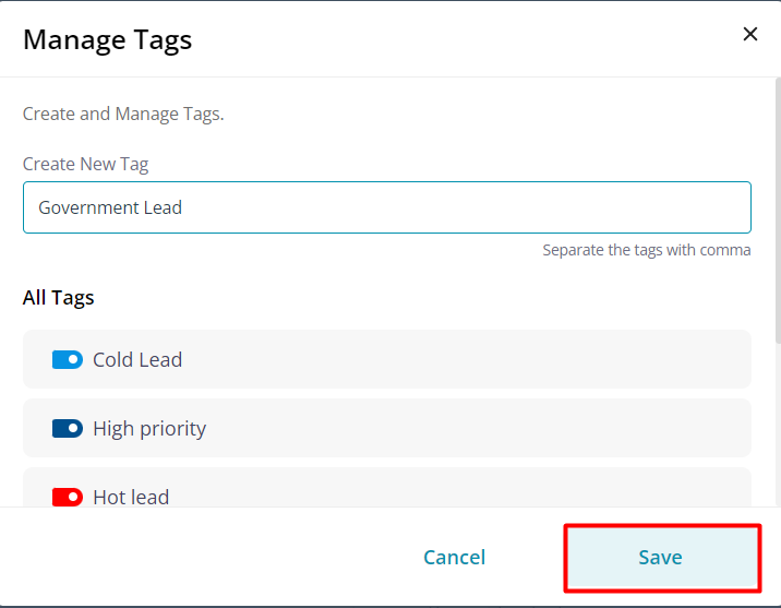 The newly created tag will be added to your list of tags in the CRM.