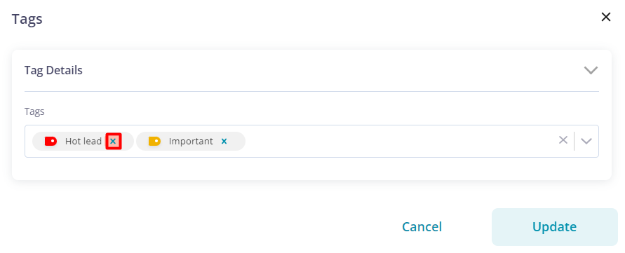 4. To delete tags from the record, click on the cross icon for that particular tag.