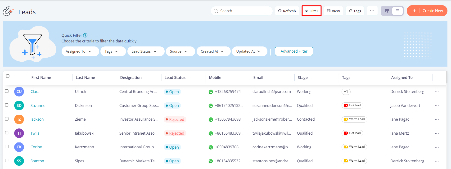 - In any of the business modules, click on the “Filter” icon.
