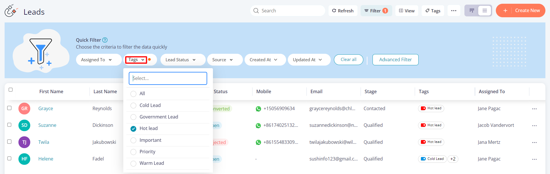 2. Apply “Tags” filter and choose a tag to churn out all the records associated with it.