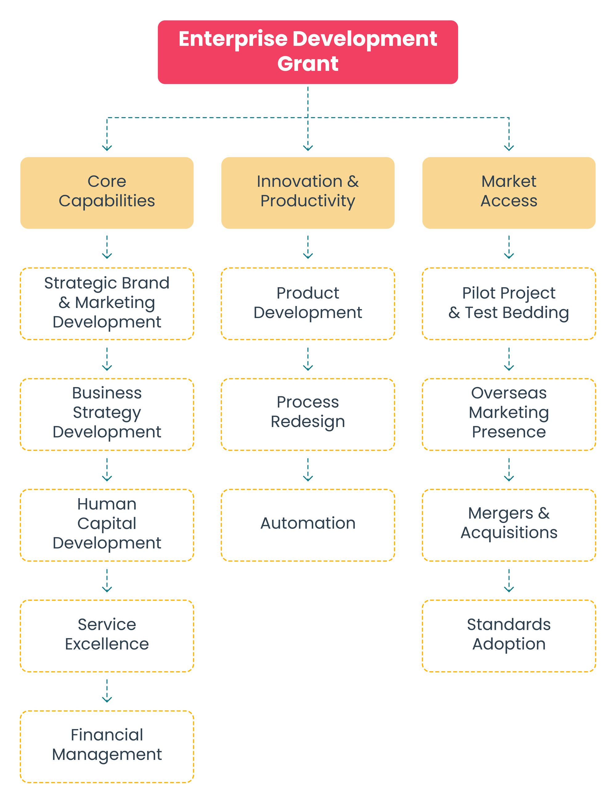 If you are eligible for Enterprise Development Grant, identify the project category you want to apply for and initiate the EDG application process.