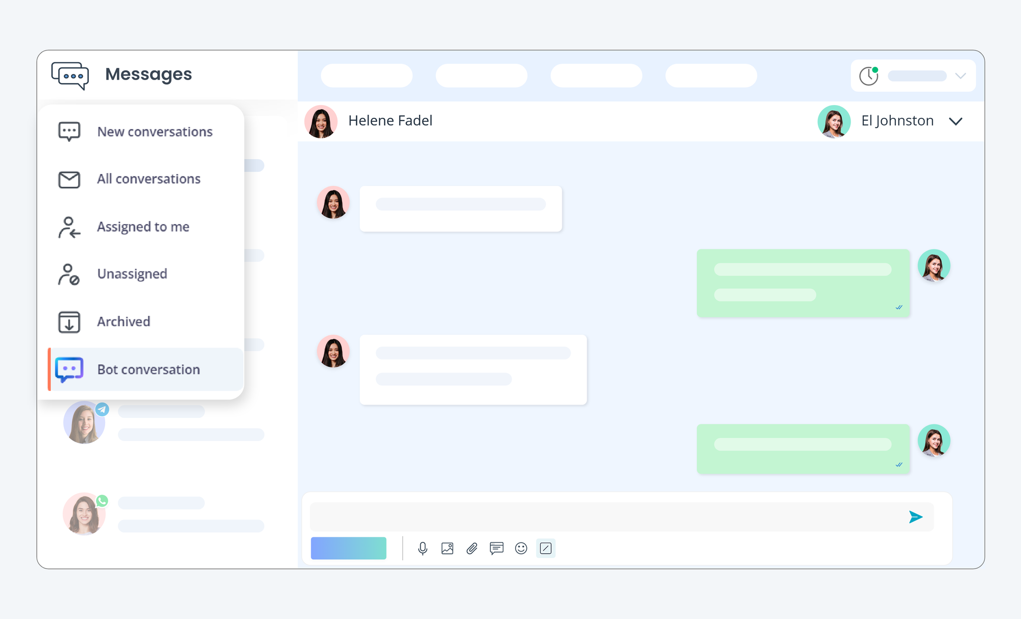 - New conversations handled by the bot will be shown in the Bot conversation tab only