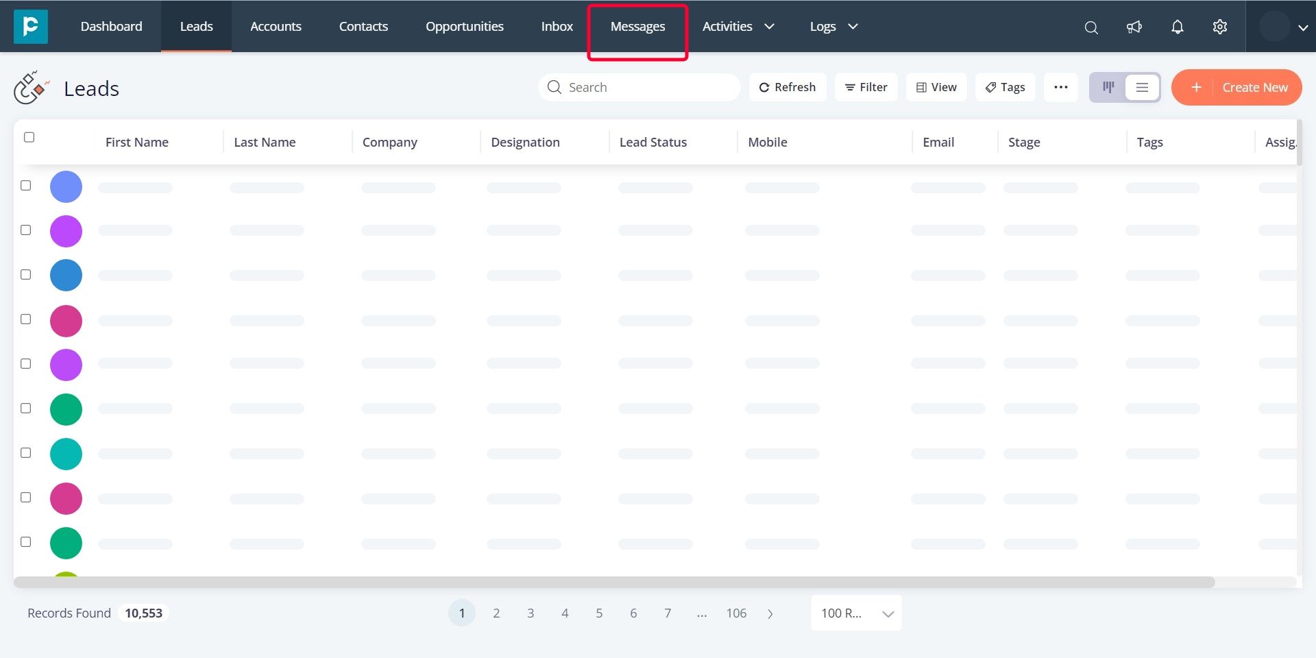 Step 1: Log in to Pepper Cloud CRM and navigate to the "Message" module.