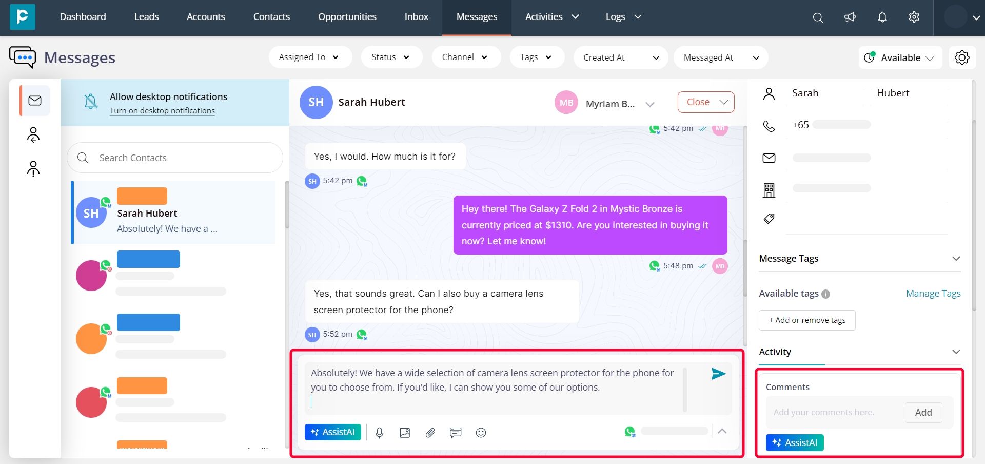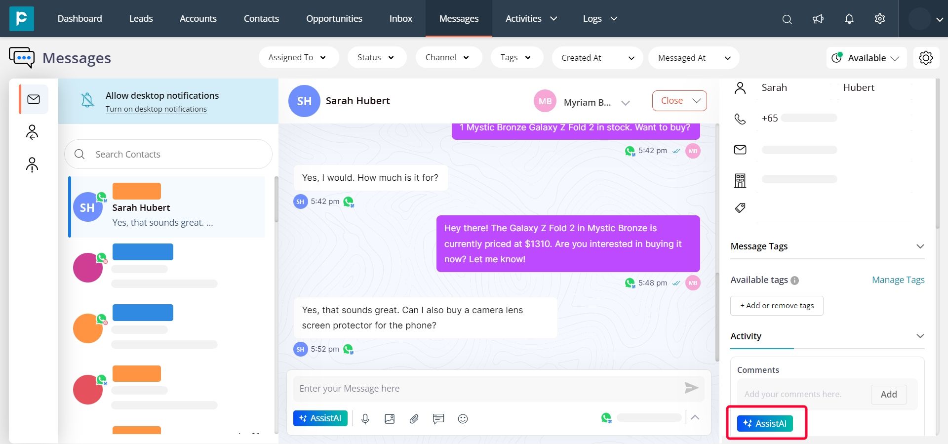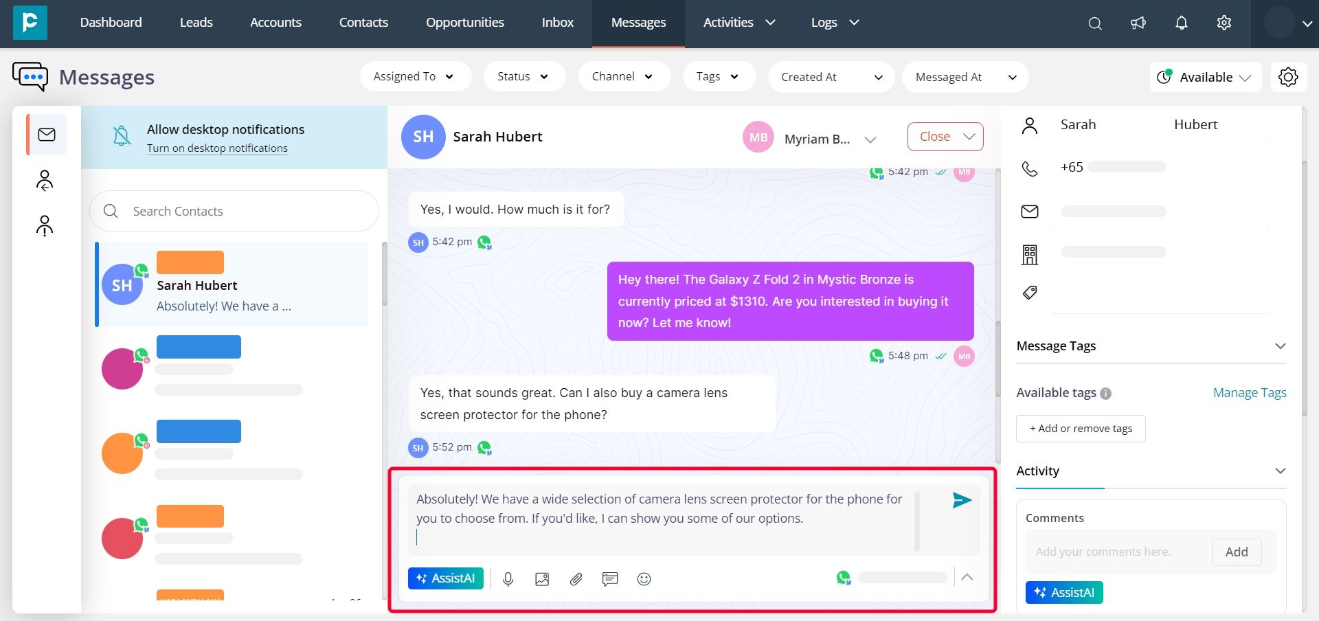 AssistAI can help you give a sophisticated edge to your conversations and add value to your business in the long run. However, it is important to double-check all responses generated by the AI feature before giving it the final seal of approval.