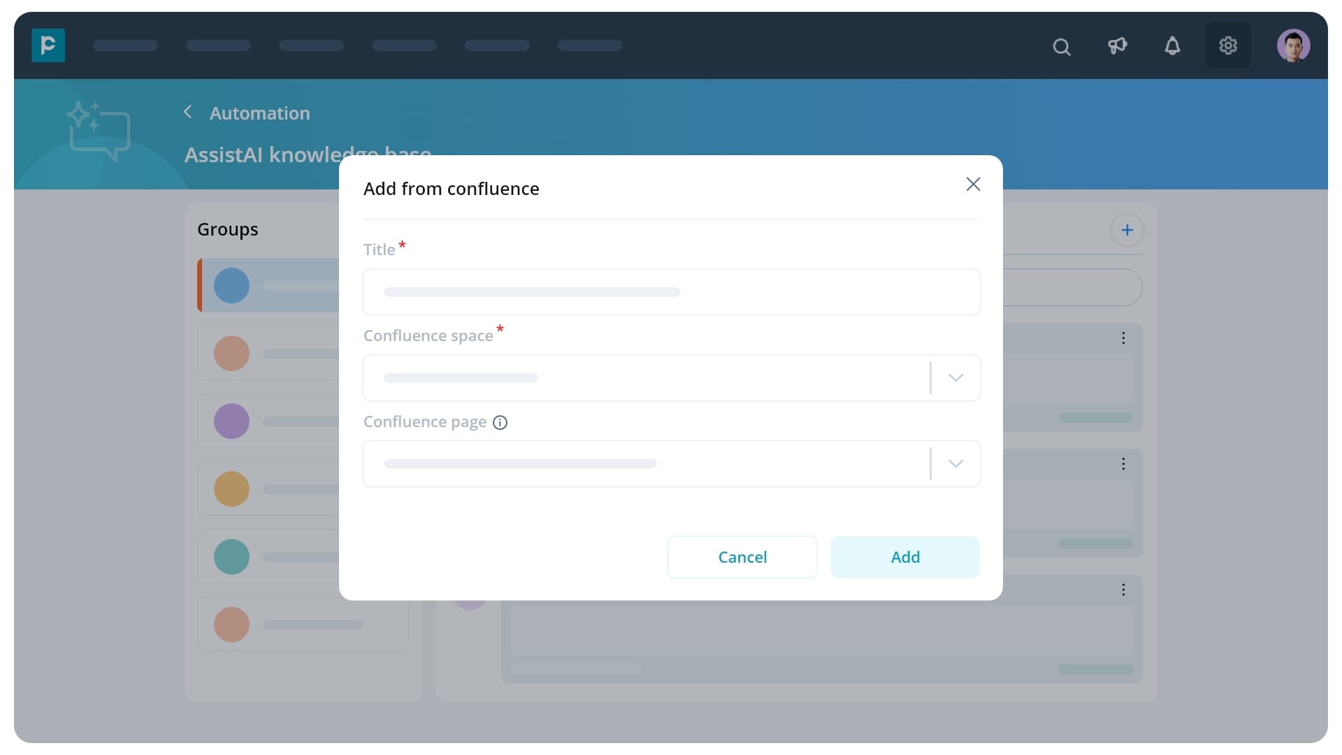 Adding Confluence spaces and pages to the knowledge base