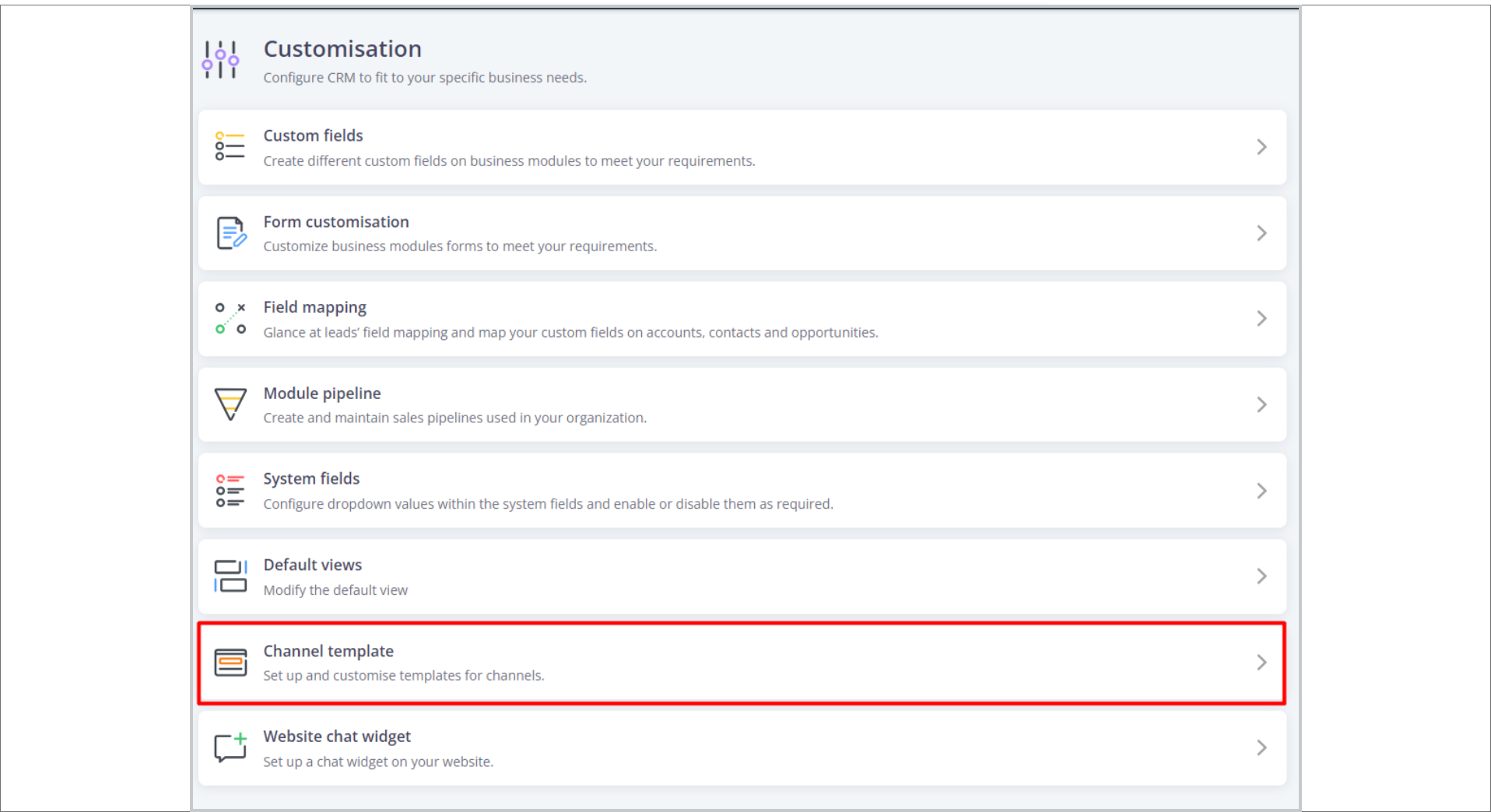 2. Click the settings icon on the top-right corner of the screen, and navigate to “Customisation” and choose “Channel Template”.