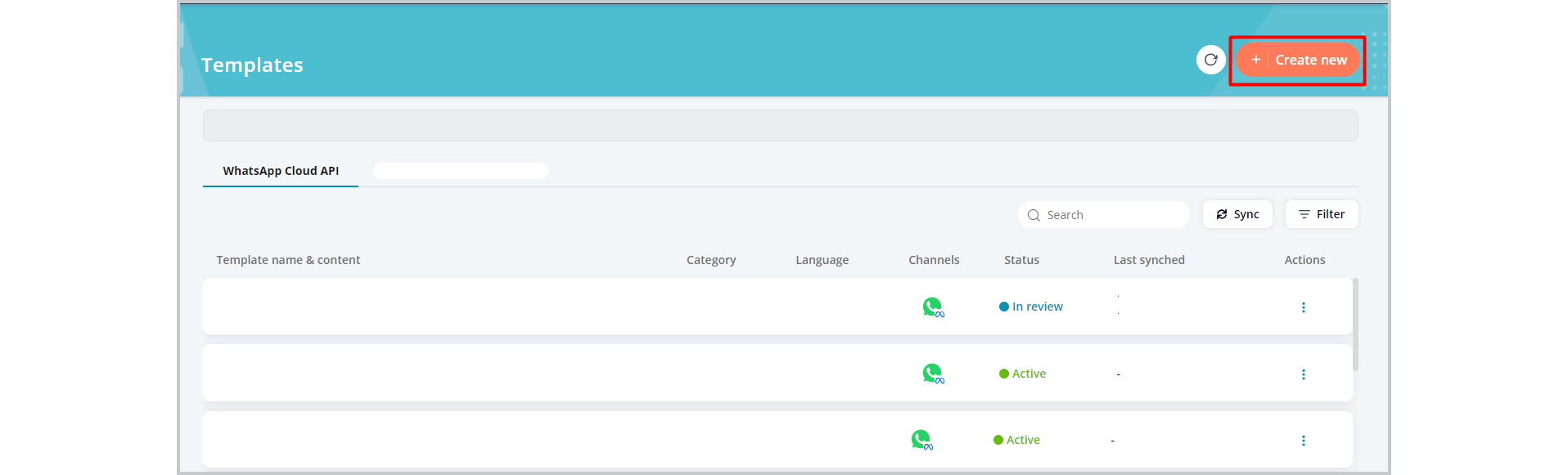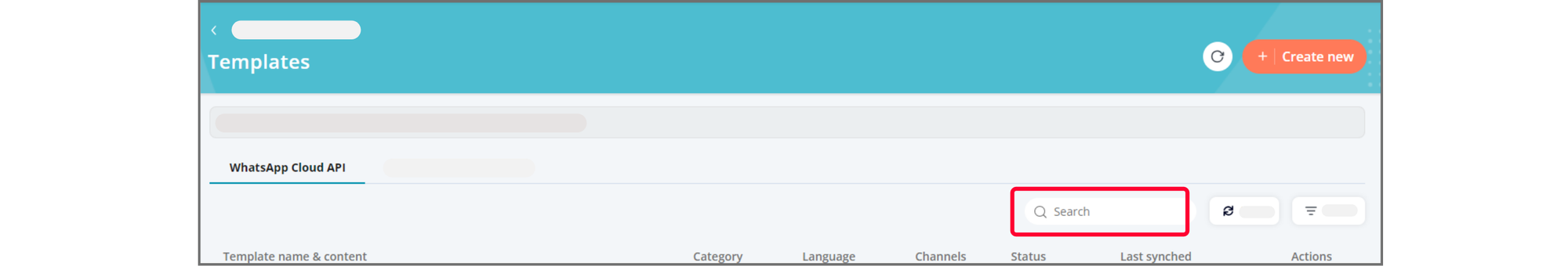 Filter templates: You can filter your templates based on language, channels, category and status.