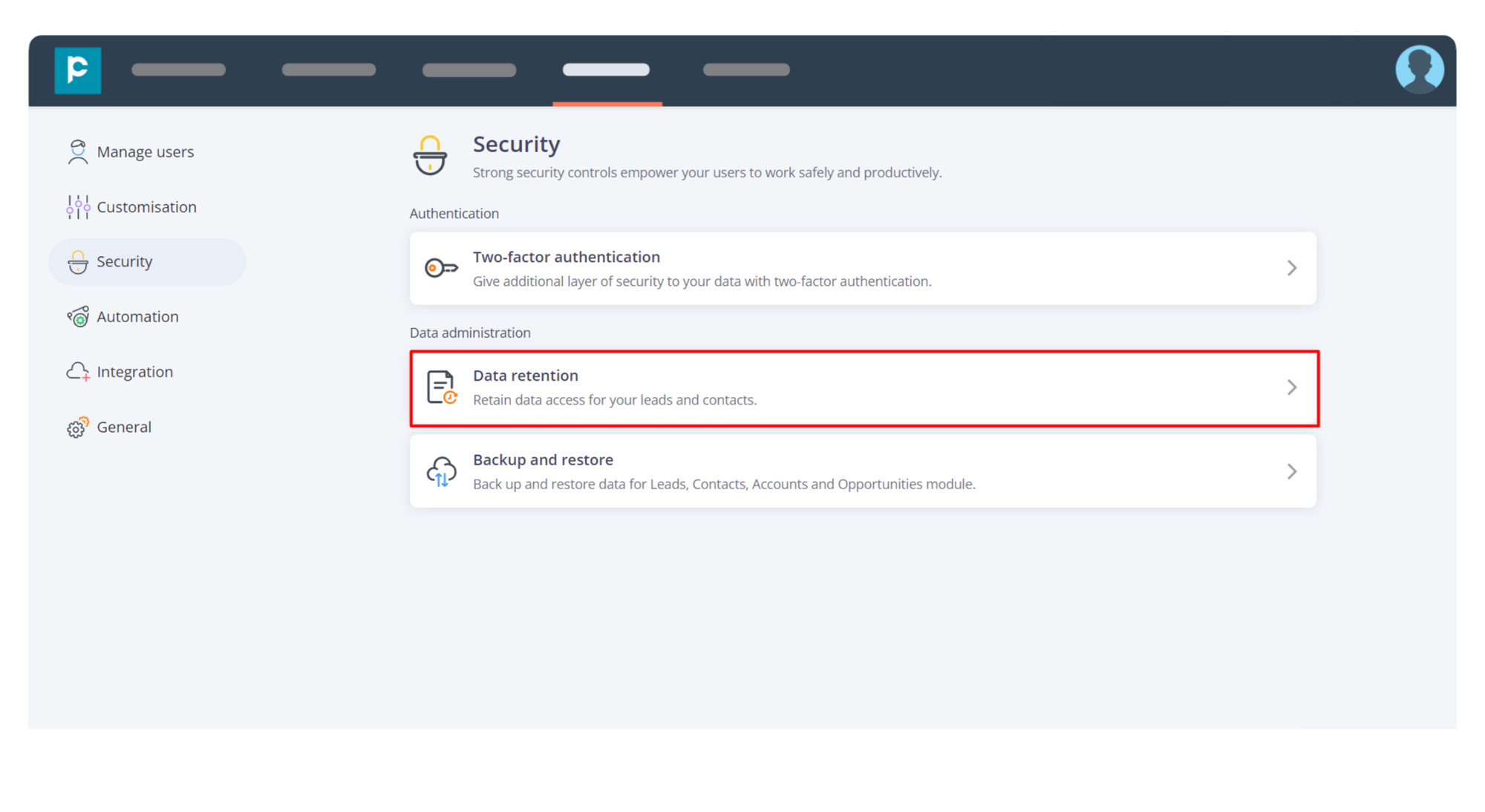 The data retention feature in Pepper Cloud CRM simplifies and secures your CRM data. You can set specific time periods for how long your data is kept and manage permissions for masking or deletion afterward. This minimises risk, maximises data integrity, and ensures peace of mind by handling your data securely throughout its lifecycle.