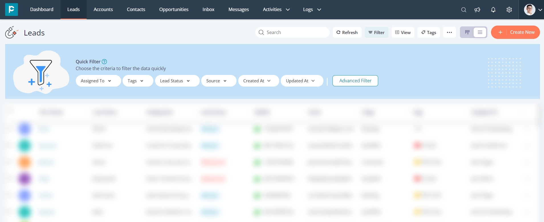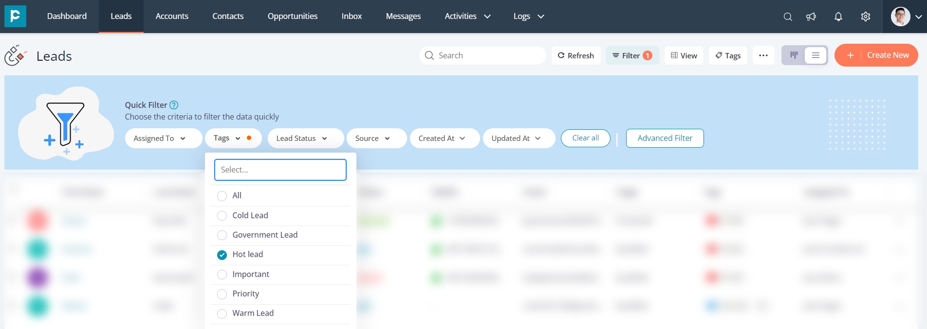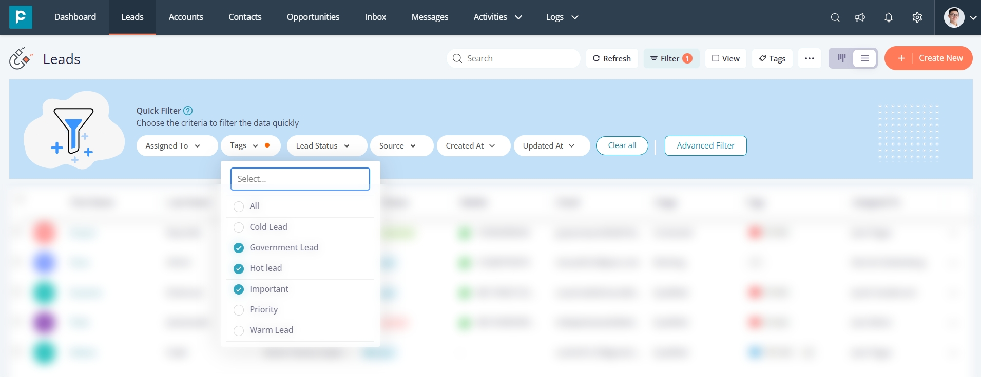 Quick filters in Pepper Cloud CRM offer a powerful tool to delve deeper into data with greater precision. By layering multiple filters, users can obtain more granular insights and narrow down the records that meet specific criteria. With six key filter options ("Assigned to," "Tags," "Lead Status," "Source," "Created At," and "Updated At"), users can effortlessly filter out specific records and focus on the information that matters most.