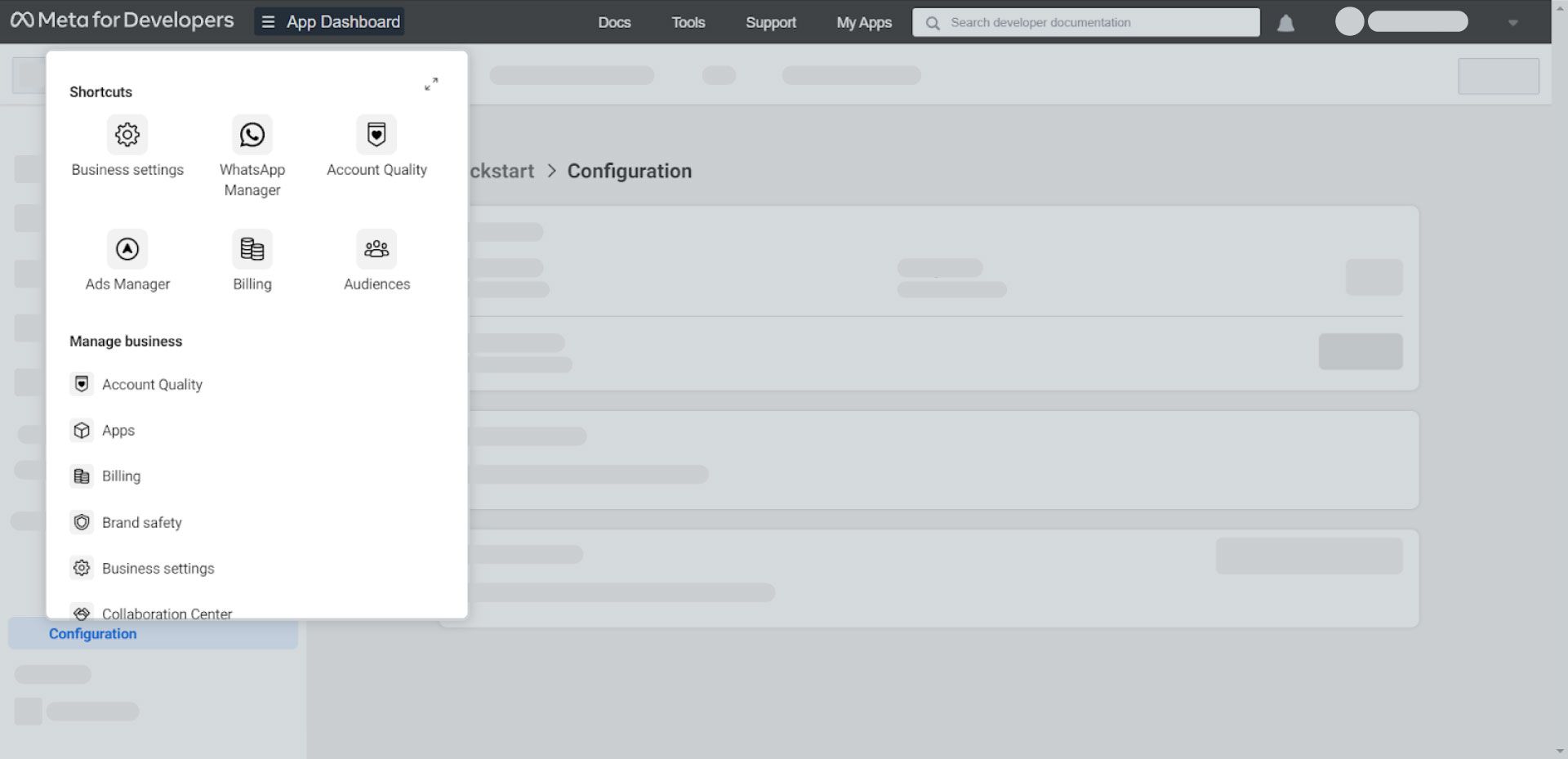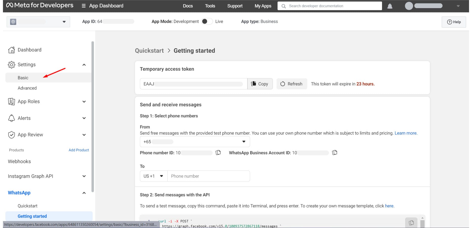 2. Click “App Dashboard” and navigate to “Business settings”.