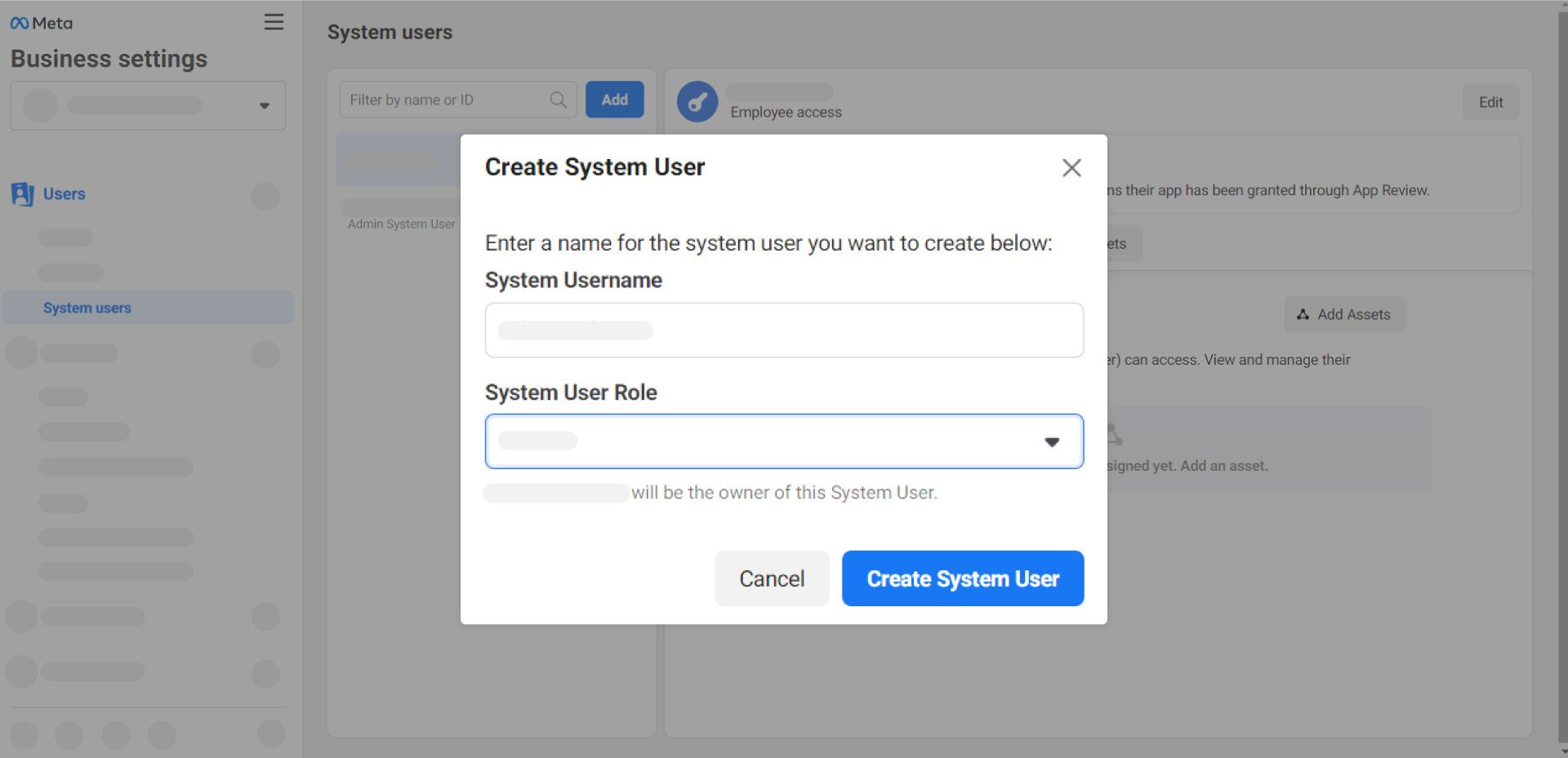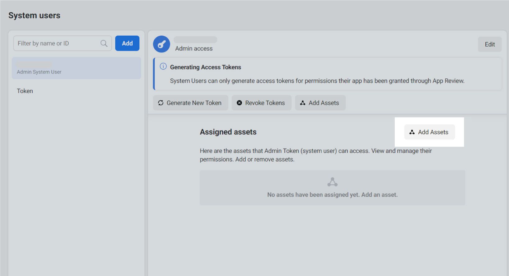 3. Navigate to “System users” (Business Settings > Users > System Users) and click “Add”.
