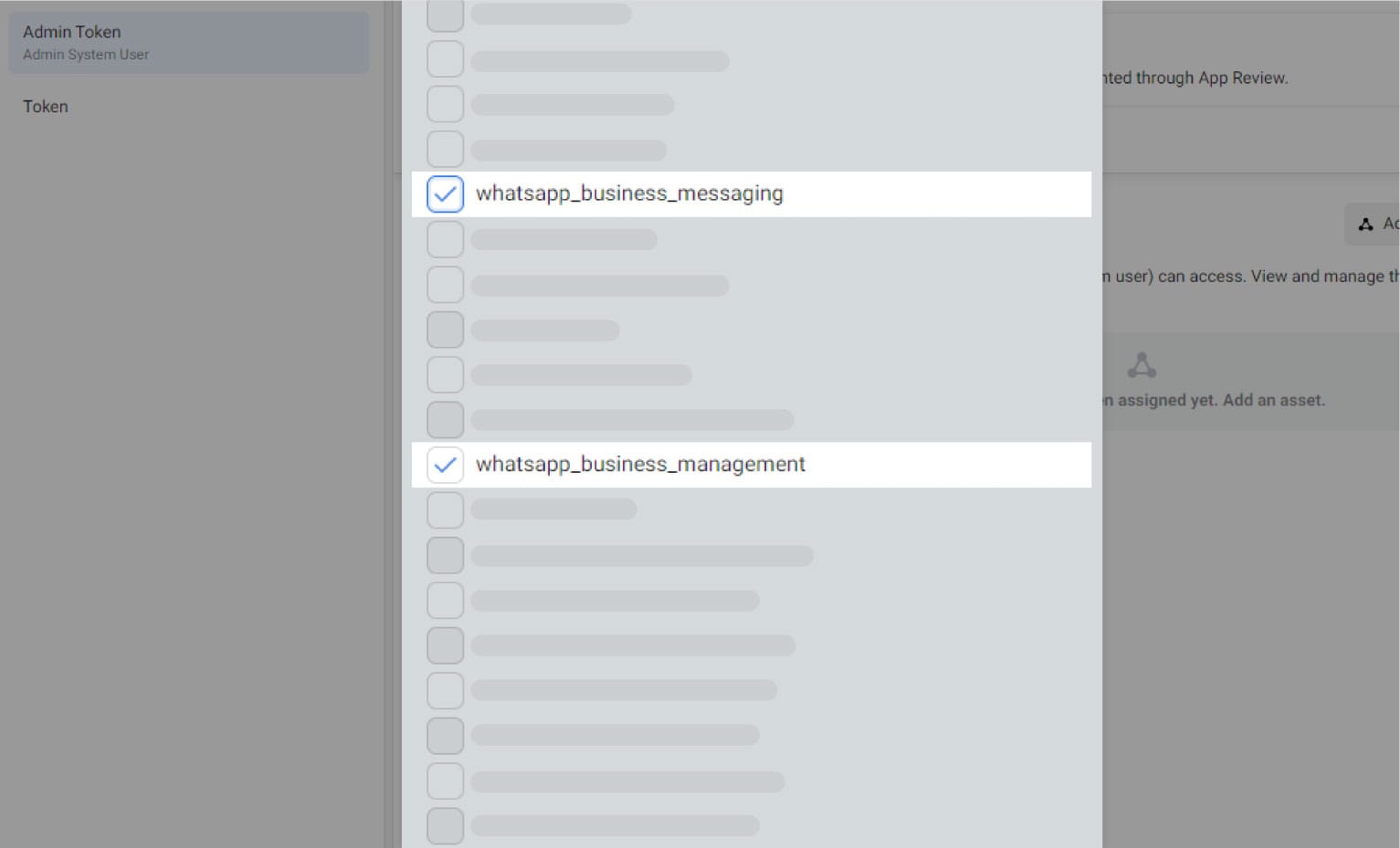9. Check "catalog_management", “whatsapp_business_messaging”, and “whatsapp_business_management”.