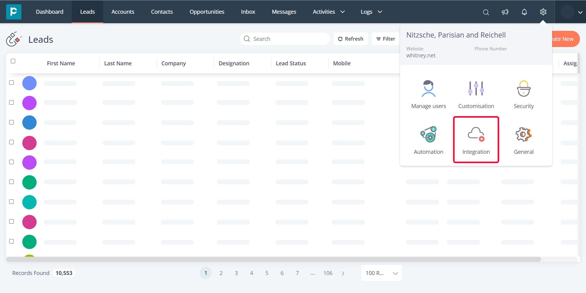3. Click on “Integration”.