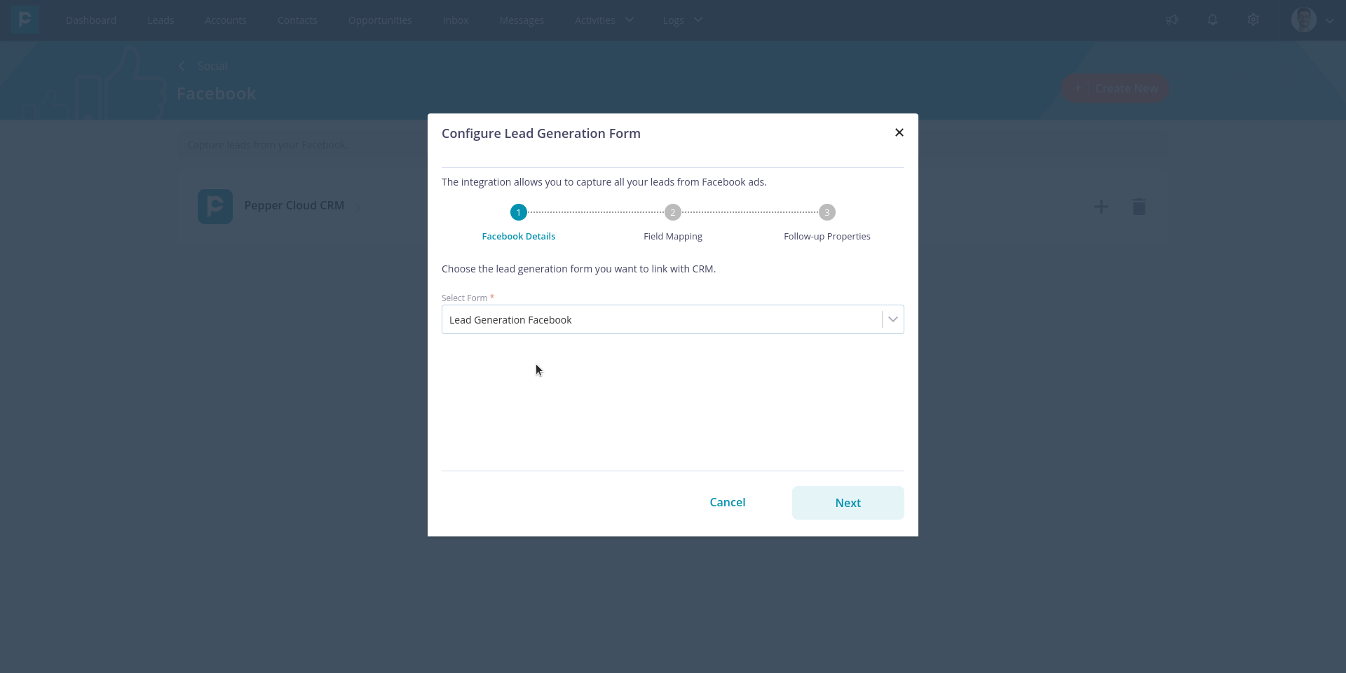 Now that you have integrated your Facebook page, you need to configure the form from which you would like to import leads. Here are the steps: