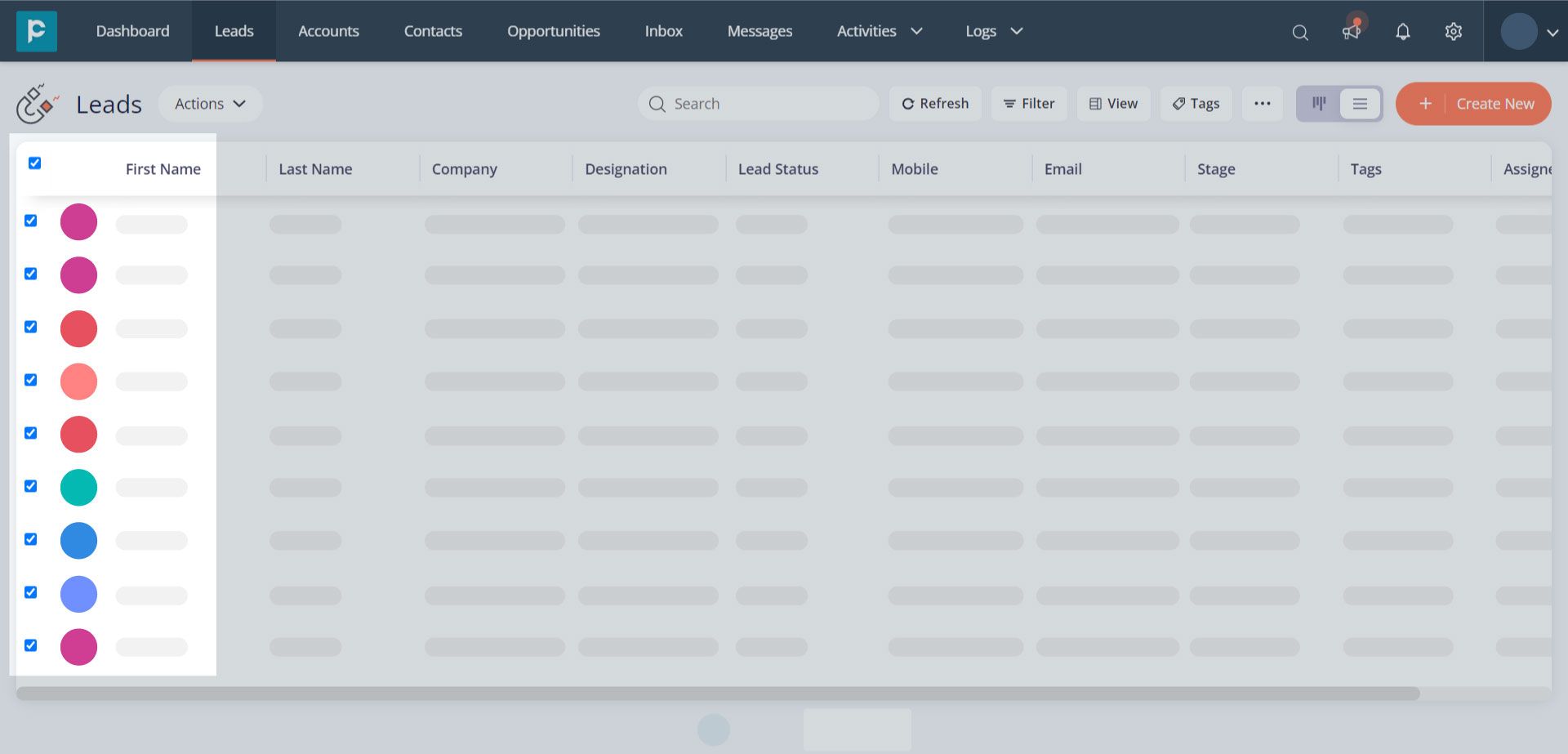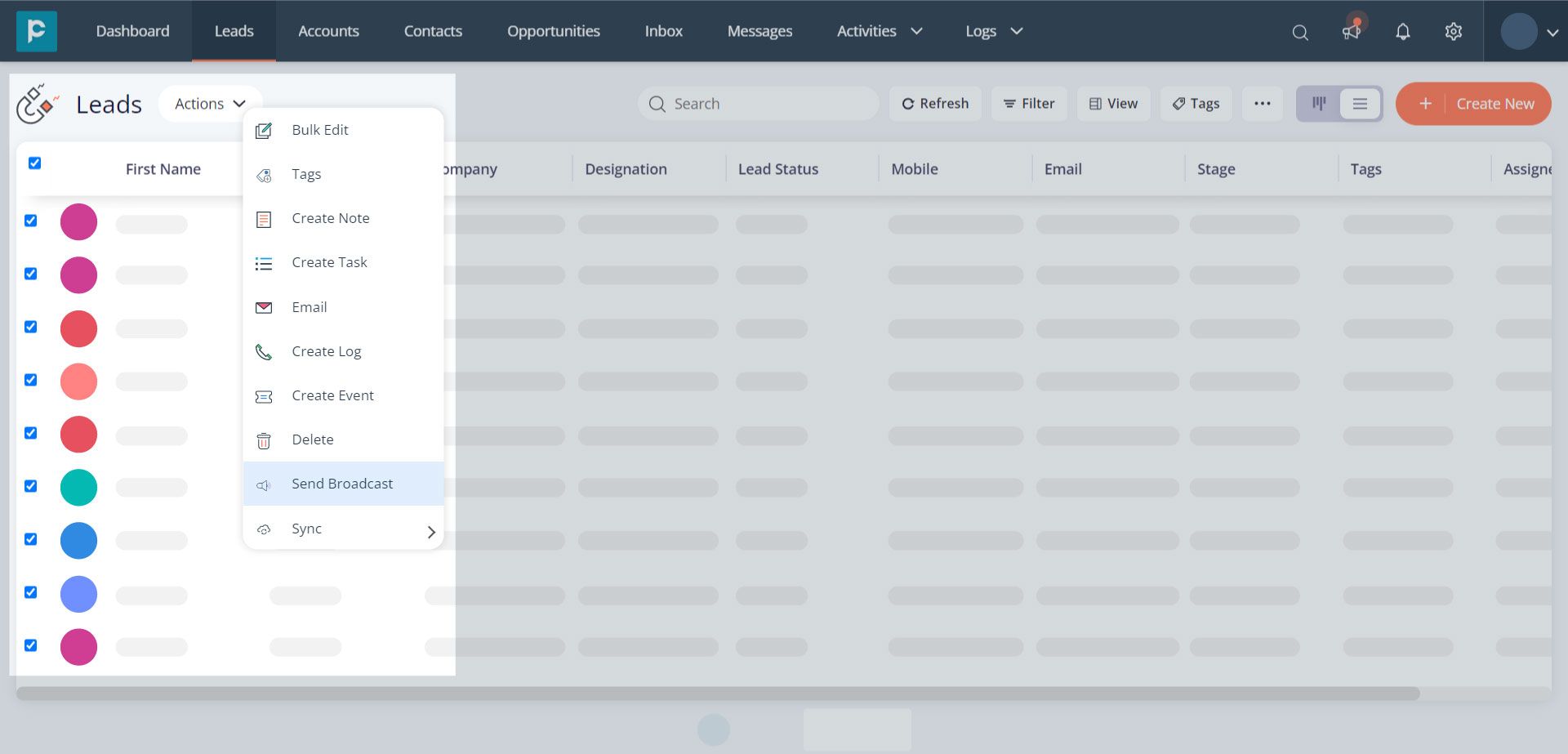 - In the CRM listing page, select all the records you want to send a broadcast message to.