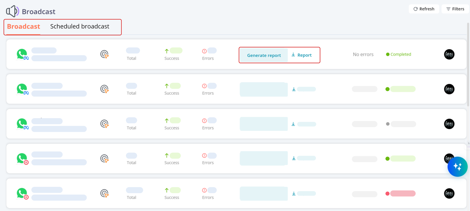You can also view the real-time status report of the broadcast by clicking on “Generate report” and downloading the report.