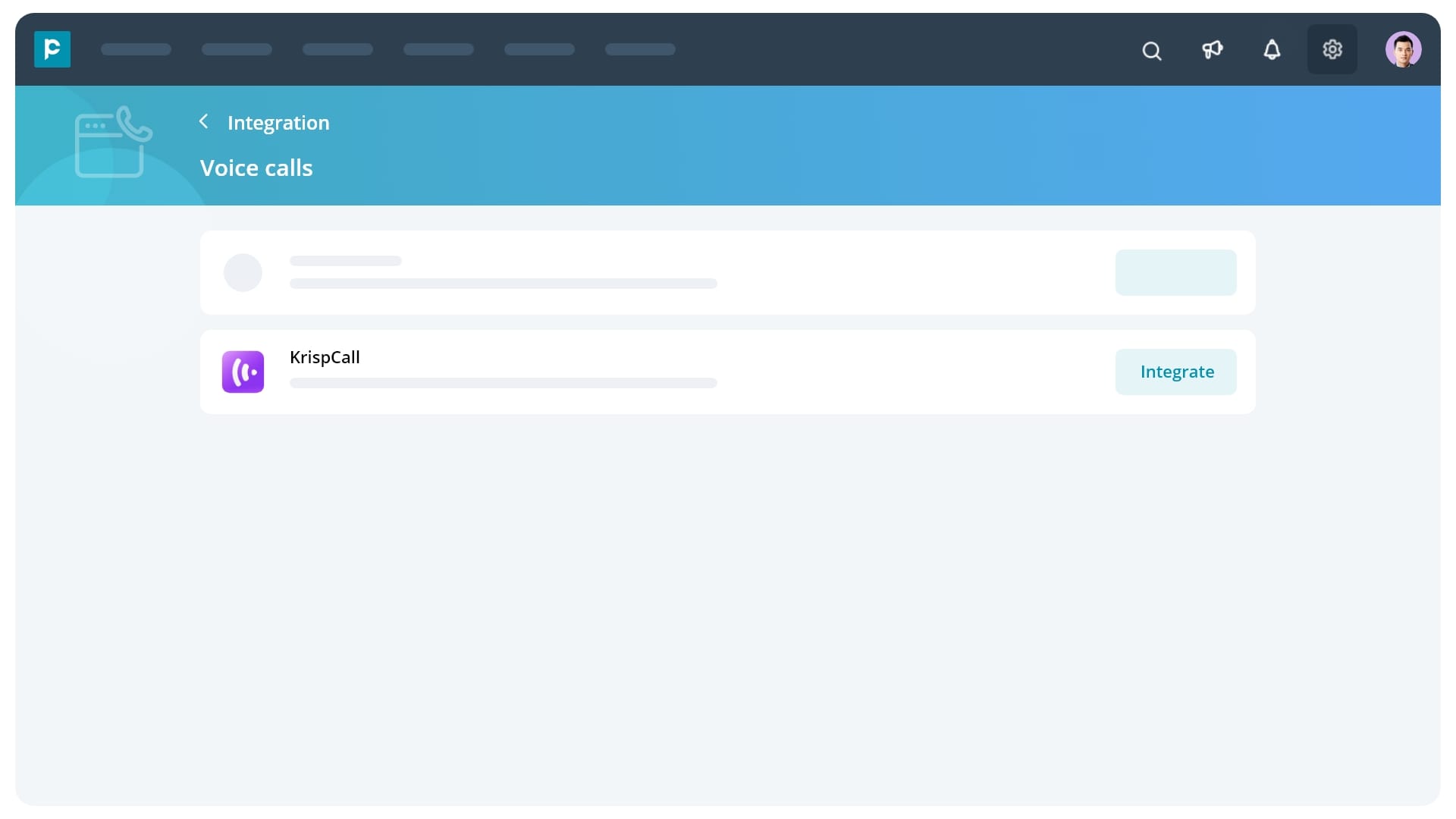 - Click on the “Integrate” button next to KrispCall.