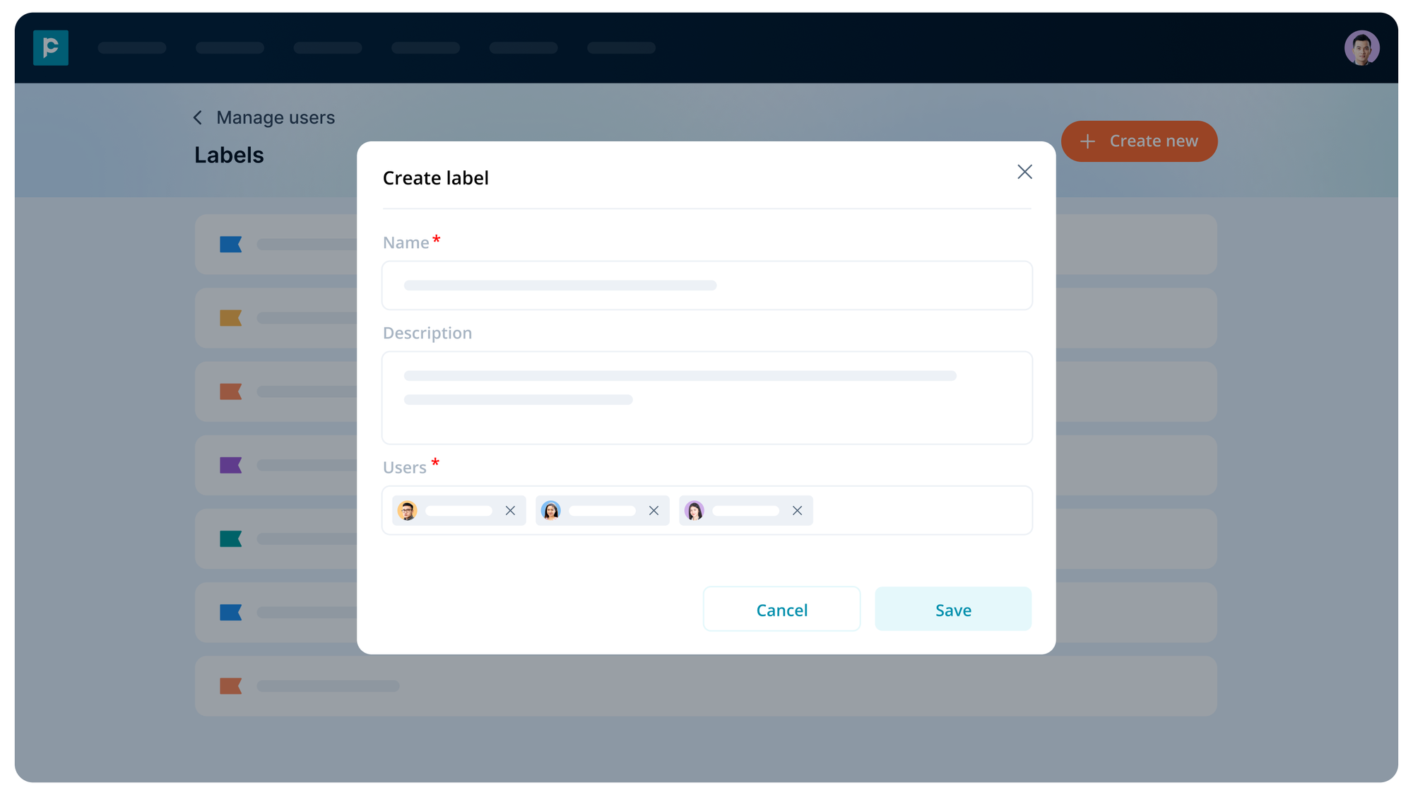 - Select from existing labels or create a new one.