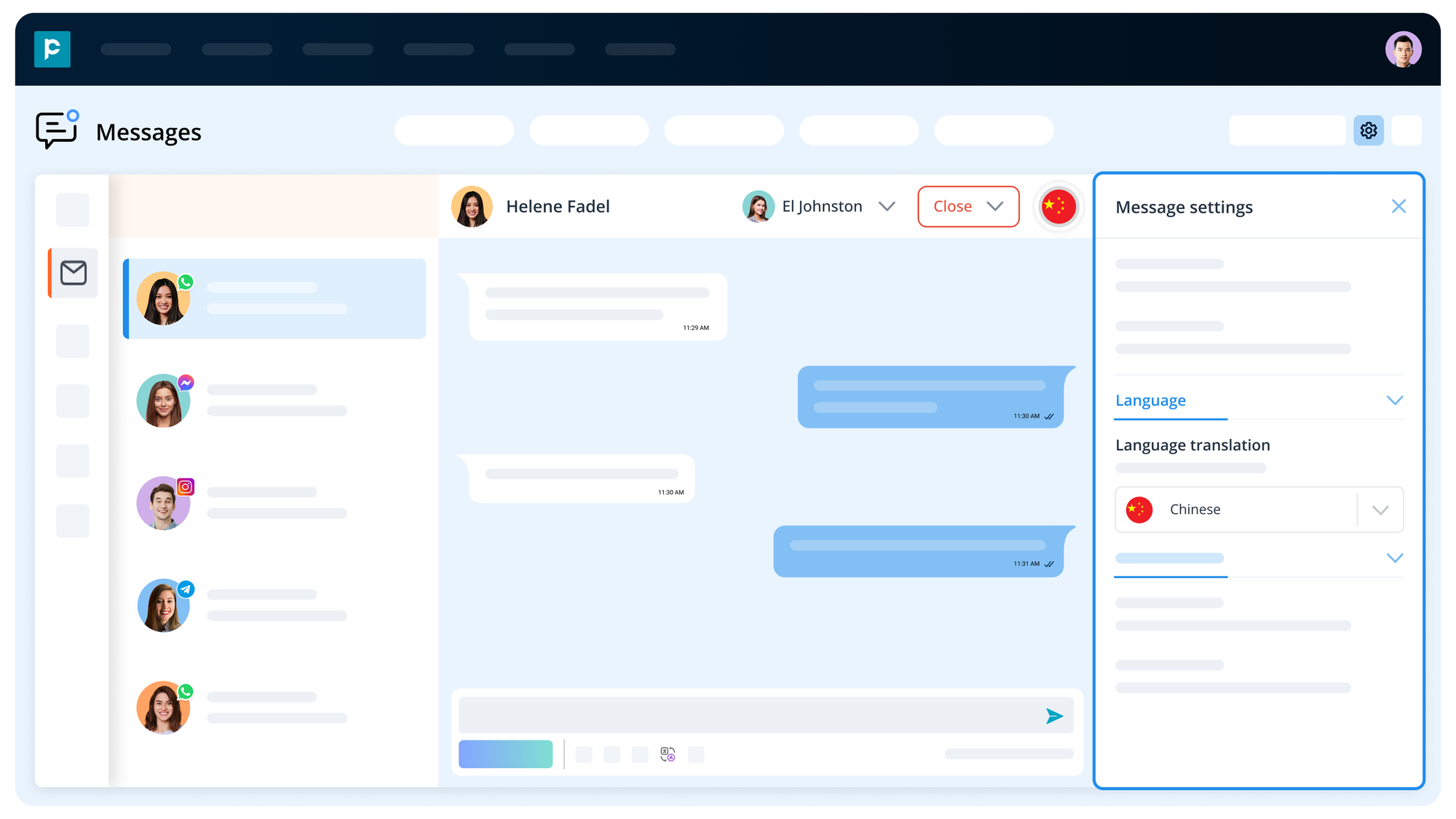 Pepper Cloud CRM handles both incoming and outgoing messages based on the selected translation mode and base language settings.