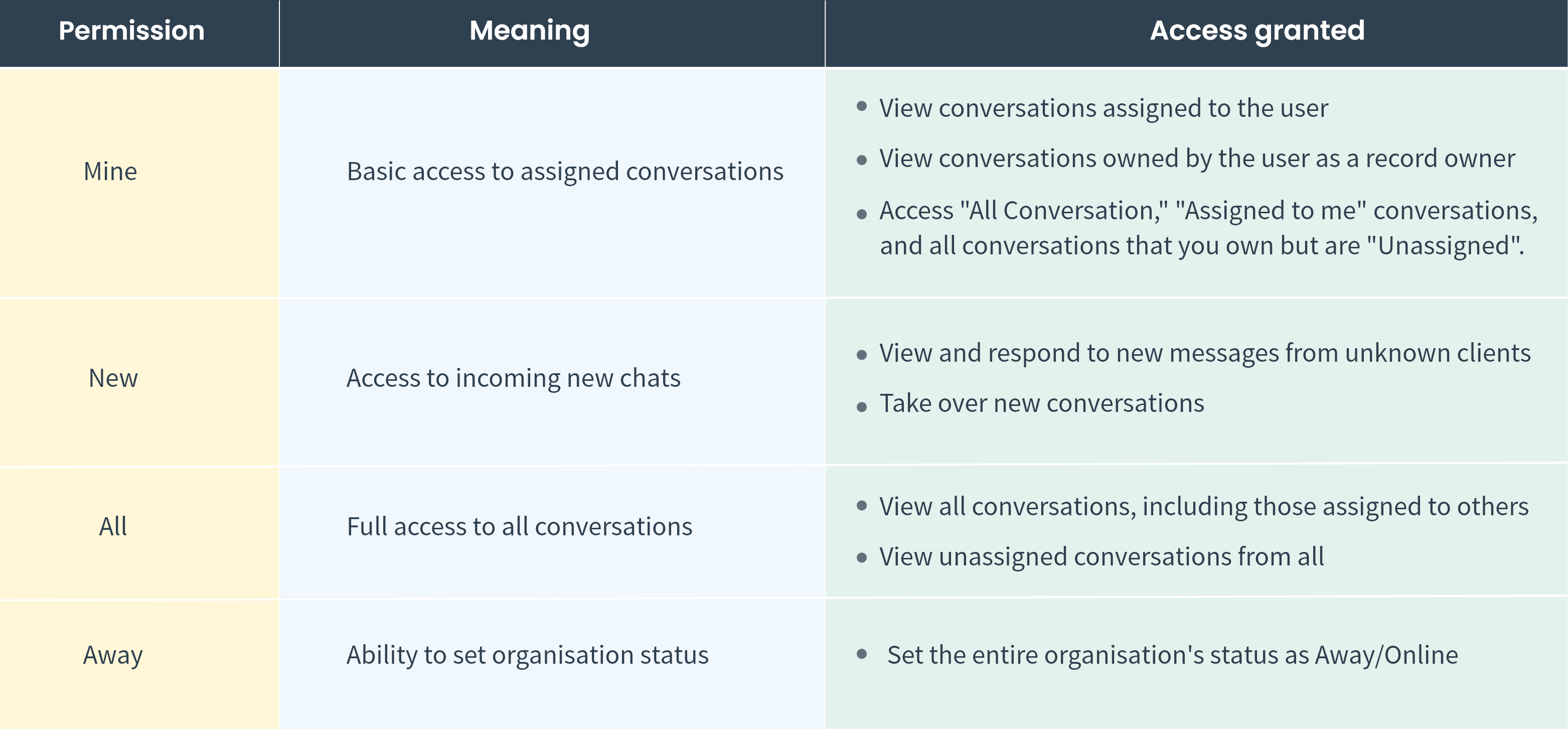 - Accountability: Clear access controls make it easier to track who has interacted with which conversations.