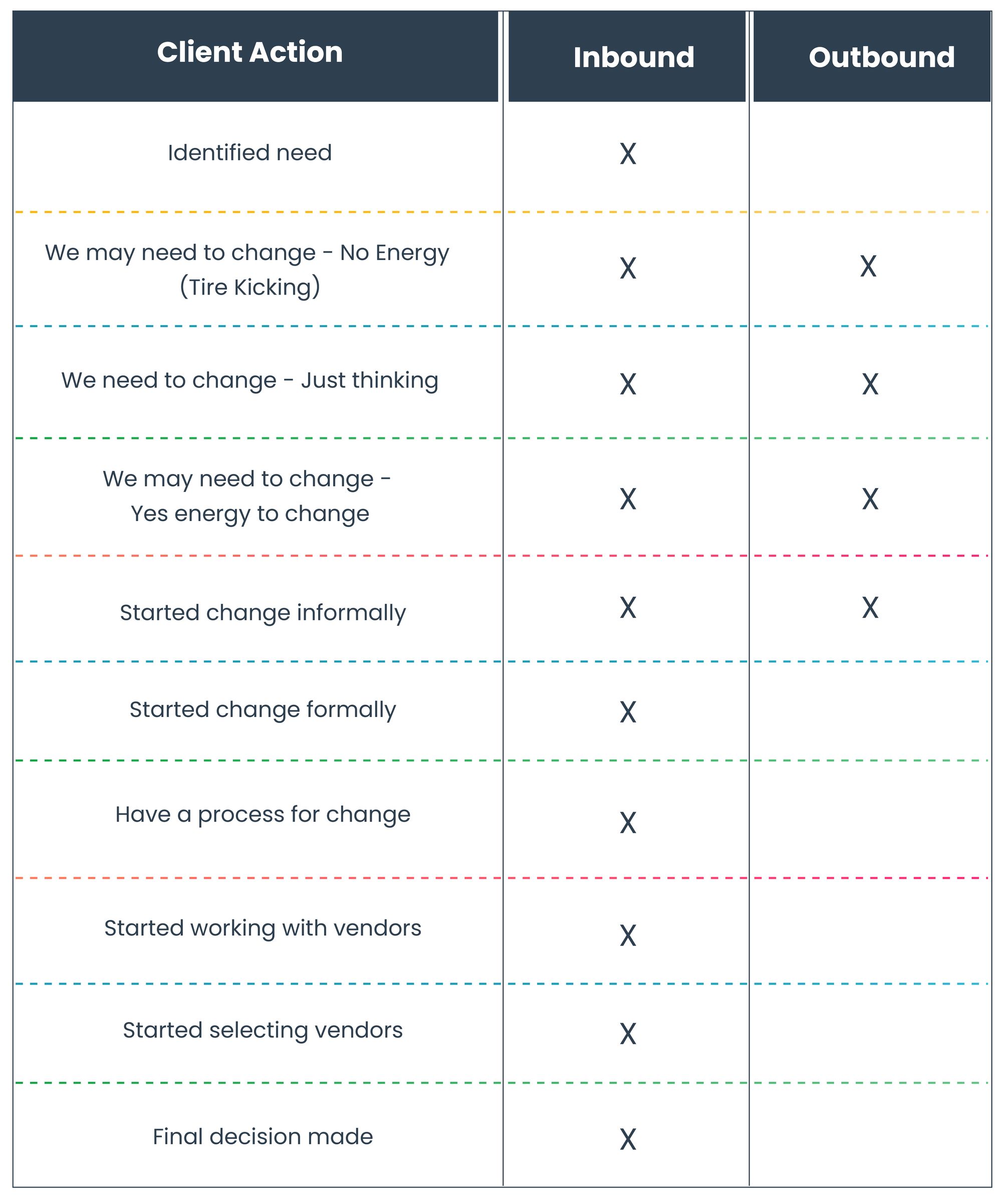 - The team might not be paying much attention to developing an outbound-lead model.