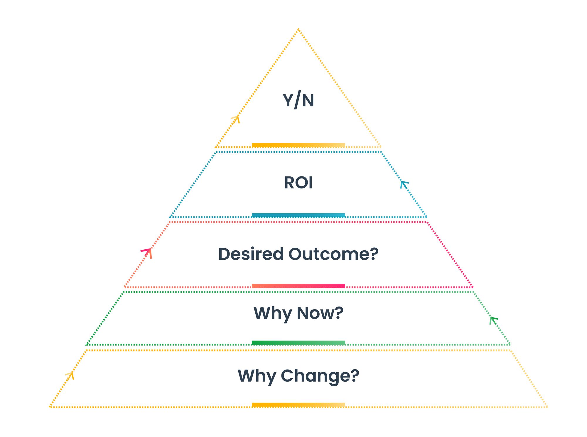 To visually explain the questions related to B2B outbound marketing strategies, William Miller used the buy-sell pyramid model.