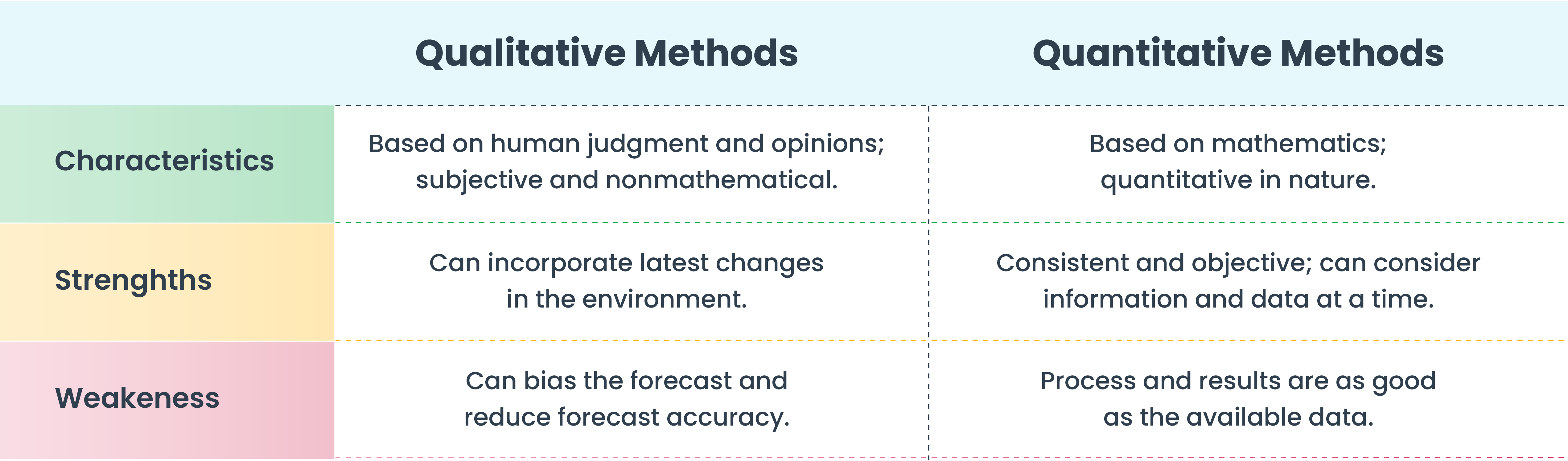 - Qualitative forecasting doesn’t always consider unexpected occurrences.