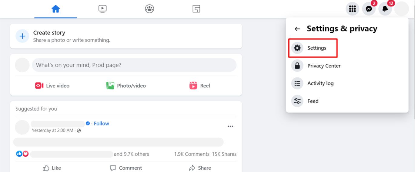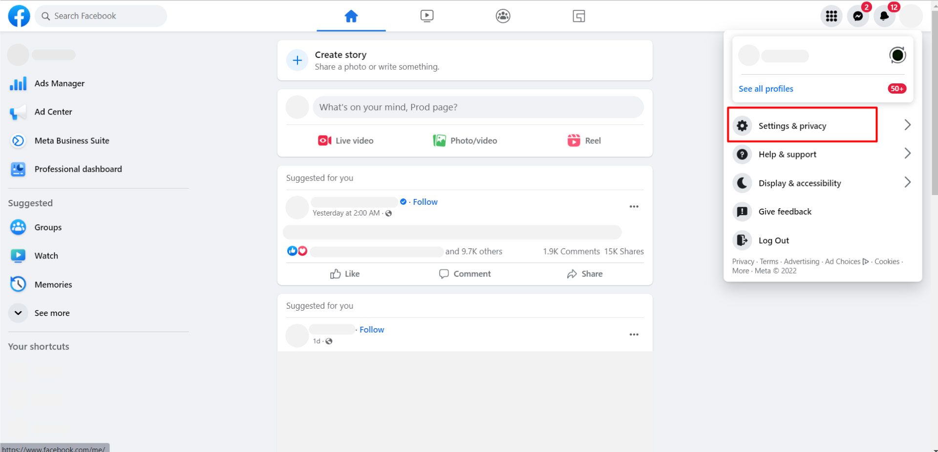 2. Click on the profile in the top-left corner and click “Settings and Privacy”.