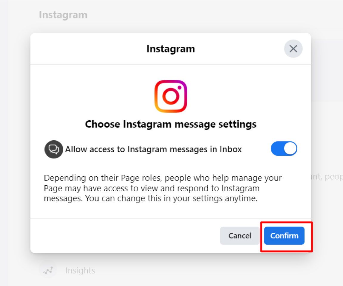 This step is mandatory if you want to access Instagram direct messages across the apps. When you enabled access to Instagram direct messages on the third-party apps such as Facebook pages, Facebook business suite, creator studio, etc., you can send and view Instagram direct messages from those apps.