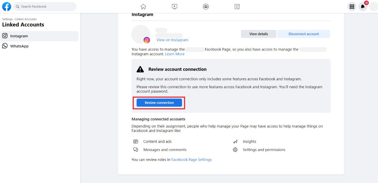 Now you have successfully connected your Instagram business account with your Facebook account. You can review the connections by navigating to “Linked accounts” through “Settings”.