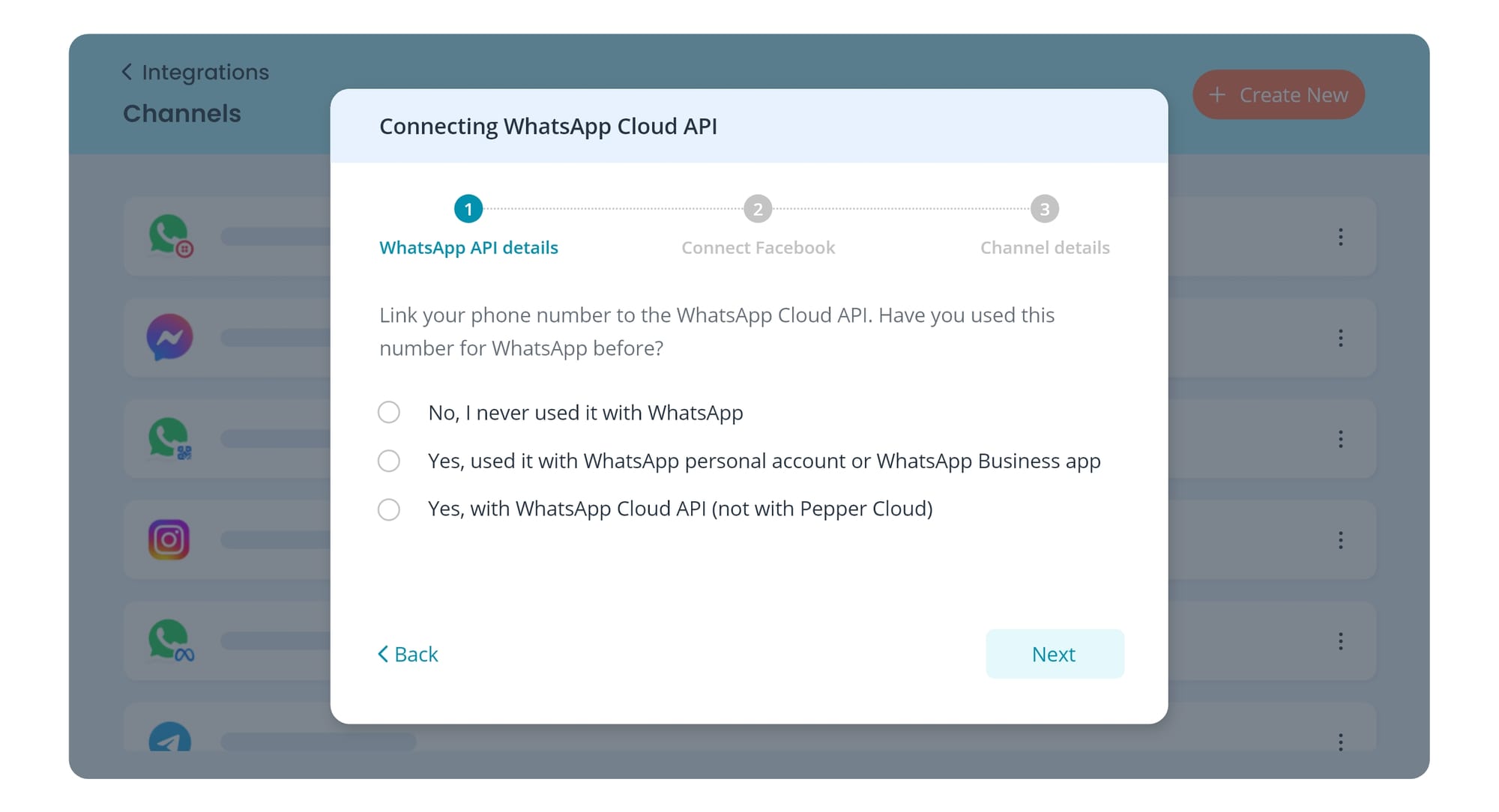 - Connect the number to Pepper Cloud using the integration steps outlined in Condition 1.
