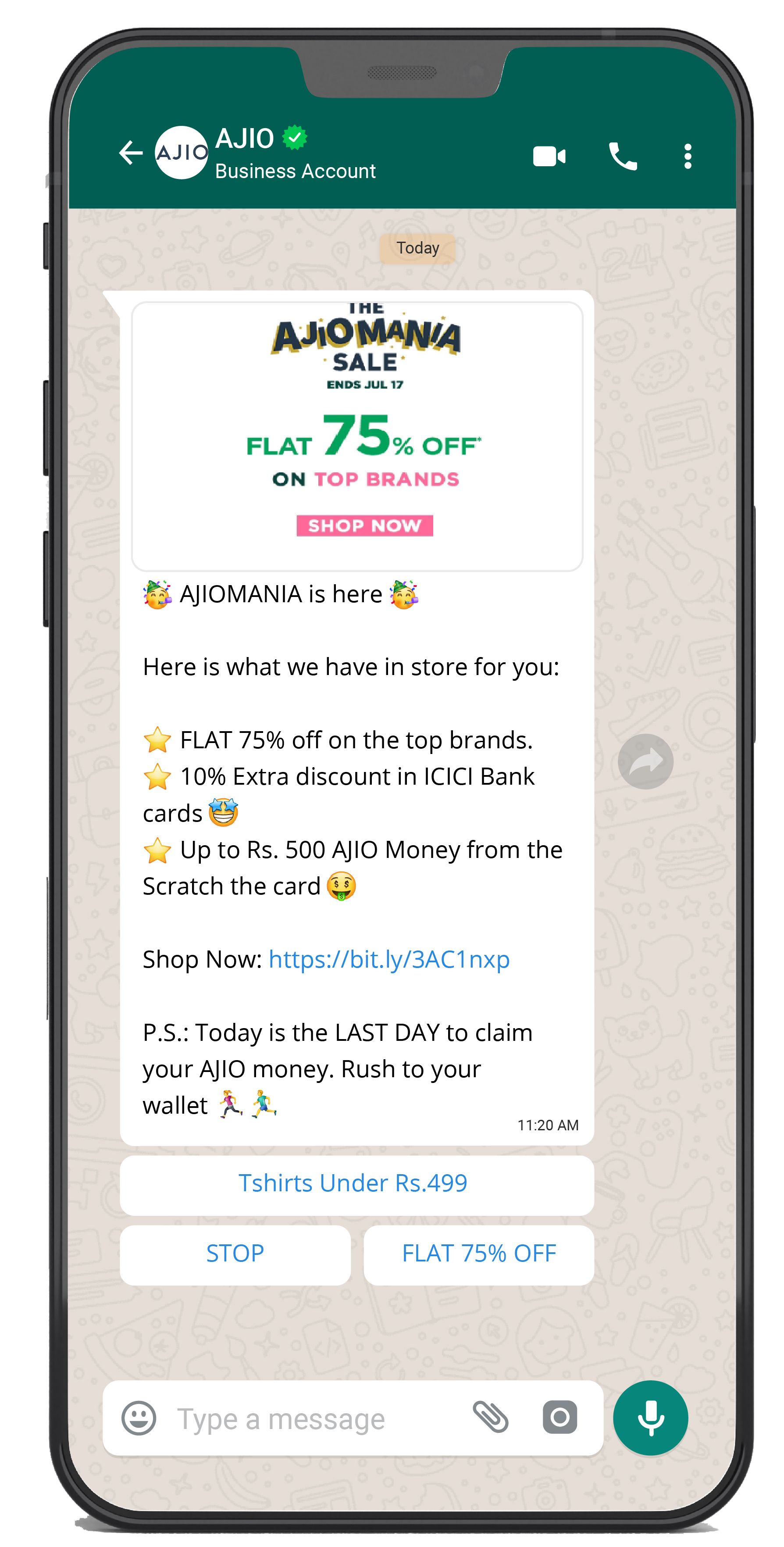 Here is an example of a WhatsApp promotional message: