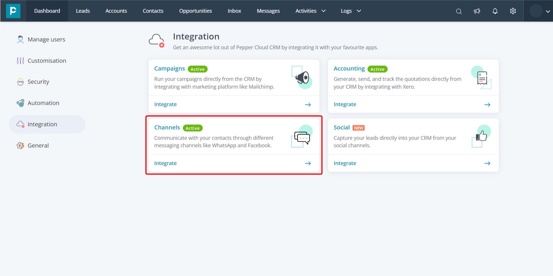 Steps to integrate WhatsApp Web with Pepper Cloud CRM