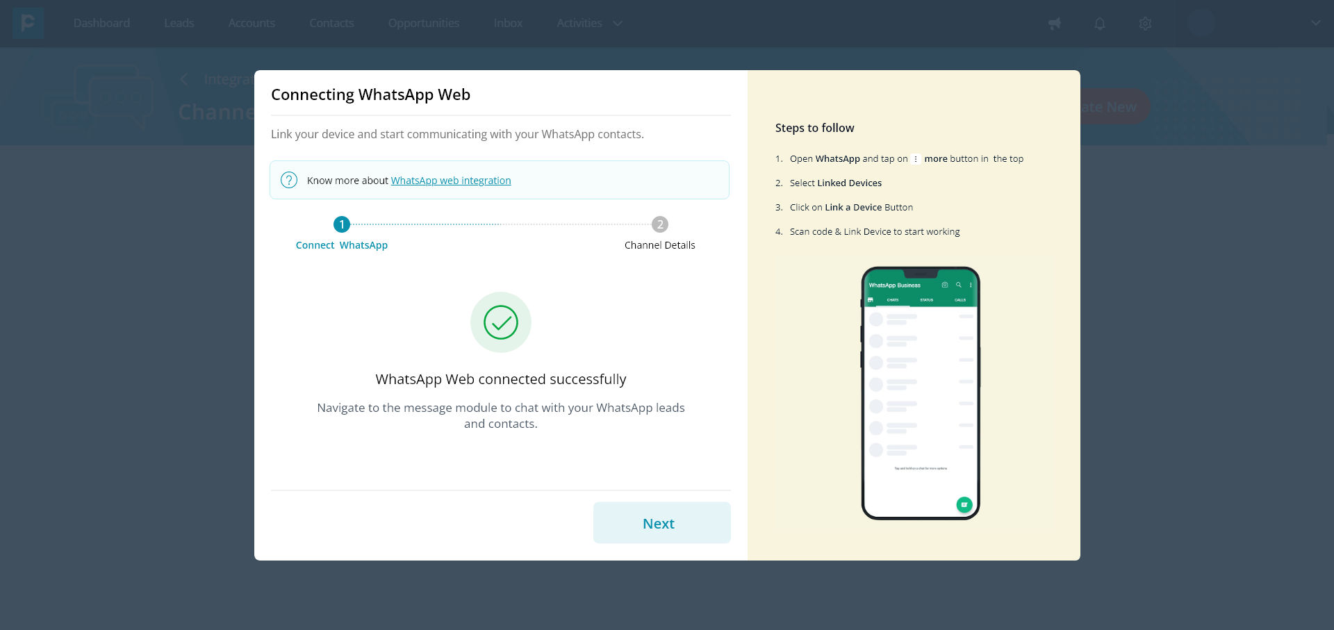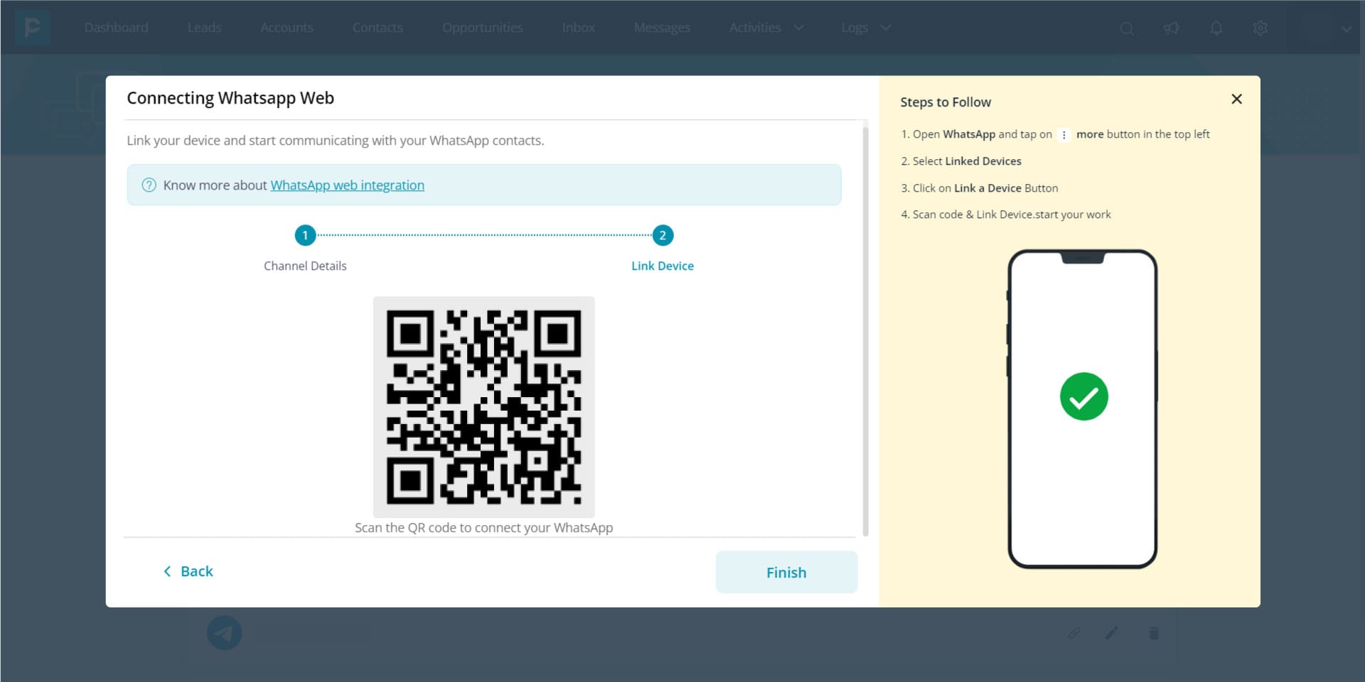 4. Scan the WhatsApp Web QR code displayed on your CRM.