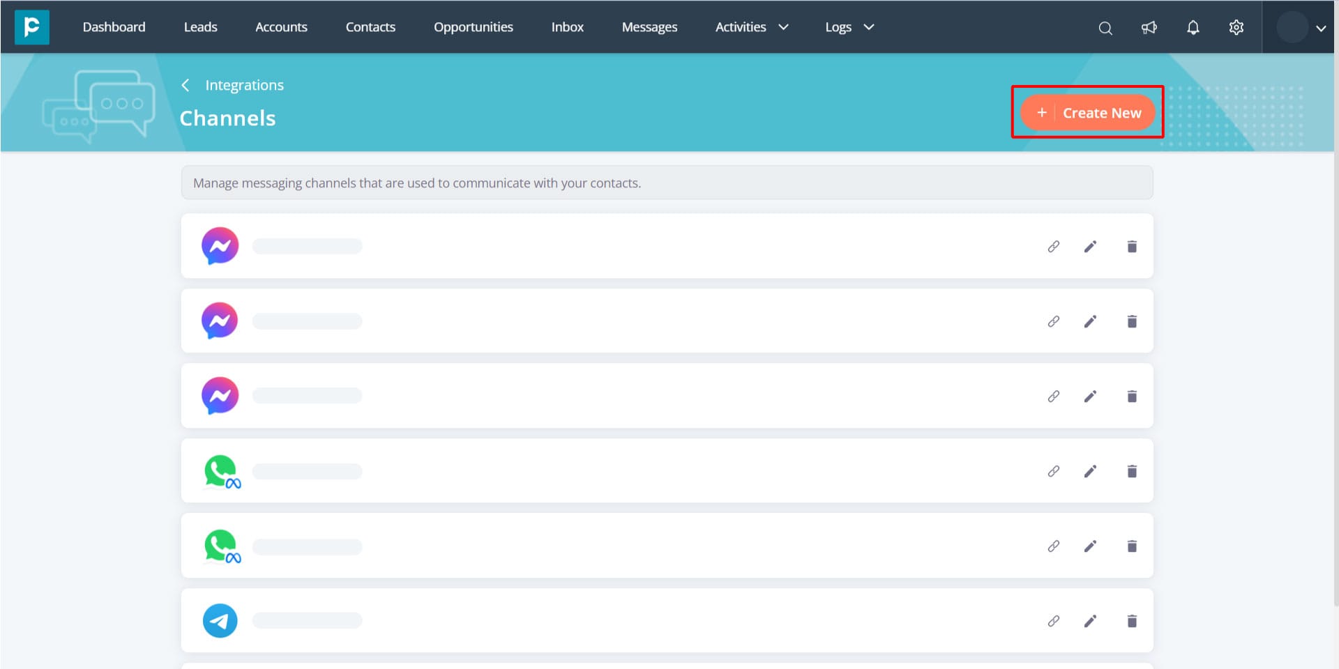 4. Click “Create New” to create a new channel for your WhatsApp Web.