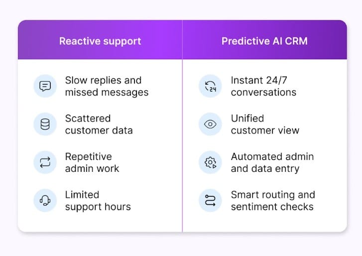 The real transformation happens when AI is added on top of WhatsApp and CRM. Instead of merely responding faster, businesses start delivering proactive, intelligent, and predictive experiences.